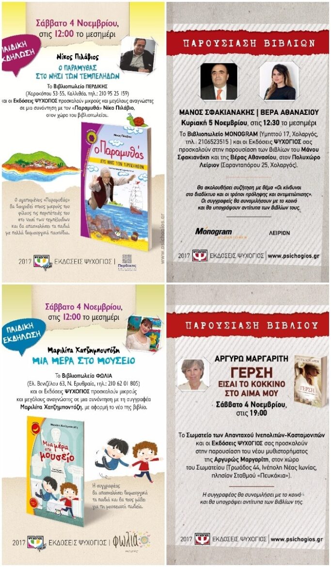 Η θεατρική ομάδα «Οι φίλοι του θεάτρου» παρουσιάζειτο παραμύθι «ΠΙΝΟΚΙΟ»στον Τεχνοχώρο Εργοτάξιοναπό το Σάββατο 4 Νοεμβρίου Λίγα λόγια για την παράσταση...Ο «ΠΙΝΟΚΙΟ», ένα από τα πιο διασκεδαστικά και ταυτόχρονα πιο στοχαστικά έργα της παγκόσμιας παιδικής λογοτεχνίας.Η παράσταση φιλοδοξεί να προσφέρει στους μικρούς θεατές, ψυχαγωγία, χαρά και γέλιο. Όλα συμβαίνουν επί σκηνής…Τρεις ηθοποιοί ενσαρκώνουν όλους τους ρόλους χρησιμοποιώντας τα εκφραστικά τους μέσα, σε συνδυασμό με μουσική, κουκλοθέατρο και μάσκες.Τα παιδιά συμμετέχουν, […]