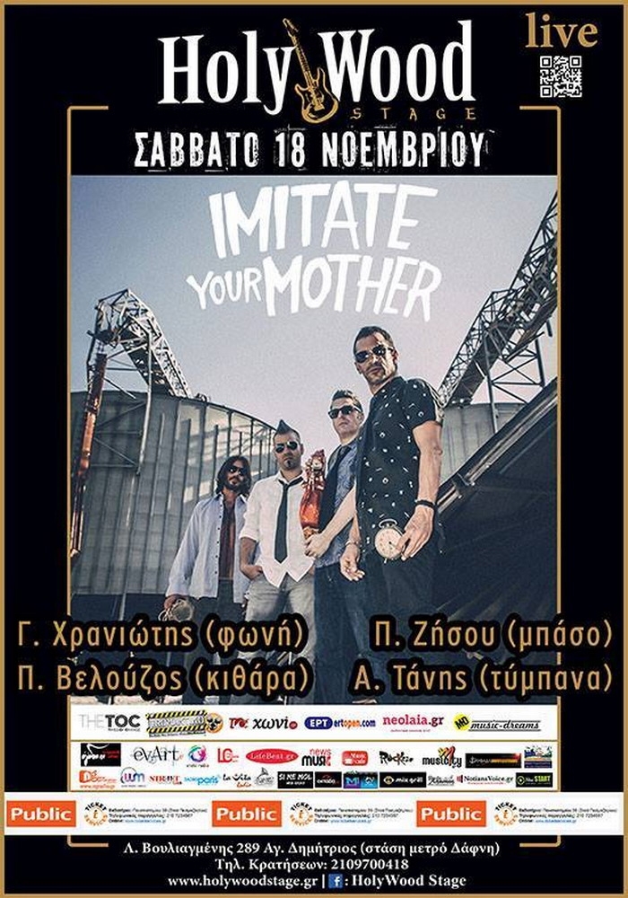 Οι Imitate Your Mother επιστρέφουν στα μουσικά δρώμενα της Αθήνας μετά από ένα χρόνο!Το Σάββατο 18/11 στη μουσική σκηνή HolyWood Stage για ένα ταξίδι στη φωτεινή και σκοτεινή πλευρά του "Rock and Roll" τους! Μαζι τους οι εκρηκτικοί Bombing The Avenue! Γιώργος Χρανιώτης (φωνή)Πάνος Βελούζος (κιθάρα)Παύλος Ζήσου (μπάσο)Angelos Tanis (τύμπανα) Προπώληση ΕισιτήριωνΕίσοδος 8 € (προπώληση) με δωρεάν ποτήρι μπύρα ή κρασίΦυσική προπώληση εισιτηρίων πραγματοποιείται:α) Σε ΟΛΑ τα καταστήματα PUBLICOnline:http://tickets.public.gr/el/HolyWoodStage/β) ''TICKETSERVICES''Εκδοτήριο: Πανεπιστημίου 39 (Στοά Πεσμαζόγλου)Τηλεφωνικές παραγγελίες: 2107234567Online: www.ticketservices.grγ) […]