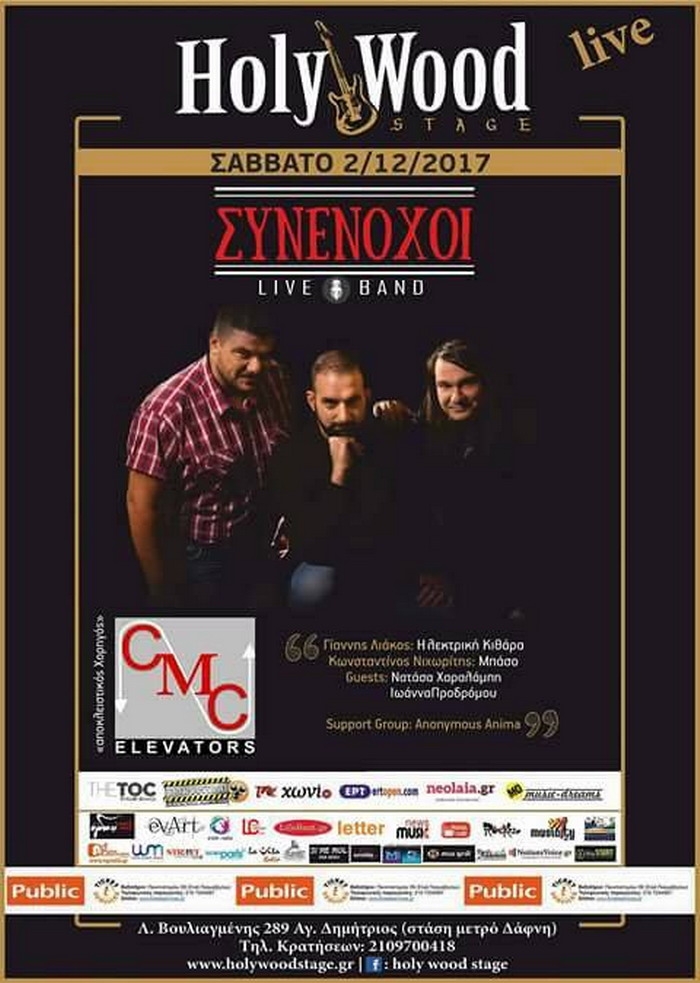 Οι ΣΥΝΕΝΟΧΟΙ Live Band έρχονται στο HolyWood Stage για το τελευταίο live της χρονιάς! Μια βράδια με εξαιρετικούς καλεσμένους, εκπλήξεις και ένα μοναδικά κεφάτο πρόγραμμα ξεκινώντας από τραγούδια της ελληνικής έντεχνης και ροκ σκηνής και φτάνοντας μέχρι το παλιό καλό λαϊκό τραγούδι ! Μαζί τους επί σκηνής:Κωνσταντίνος Νιχωρίτης : Μπάσο Γιάννης Λιάκος : Κιθάρες Guest φωνές : Ελπίδα Μεταξά , Νατάσα Χαραλάμπη ,Ιωάννα ΠροδρόμουSupport group:Anonymous AnimaΗμέρα: Σάββατο 2 ΔεκεμβρίουΏρα έναρξης: 22:30 Προπώληση […]