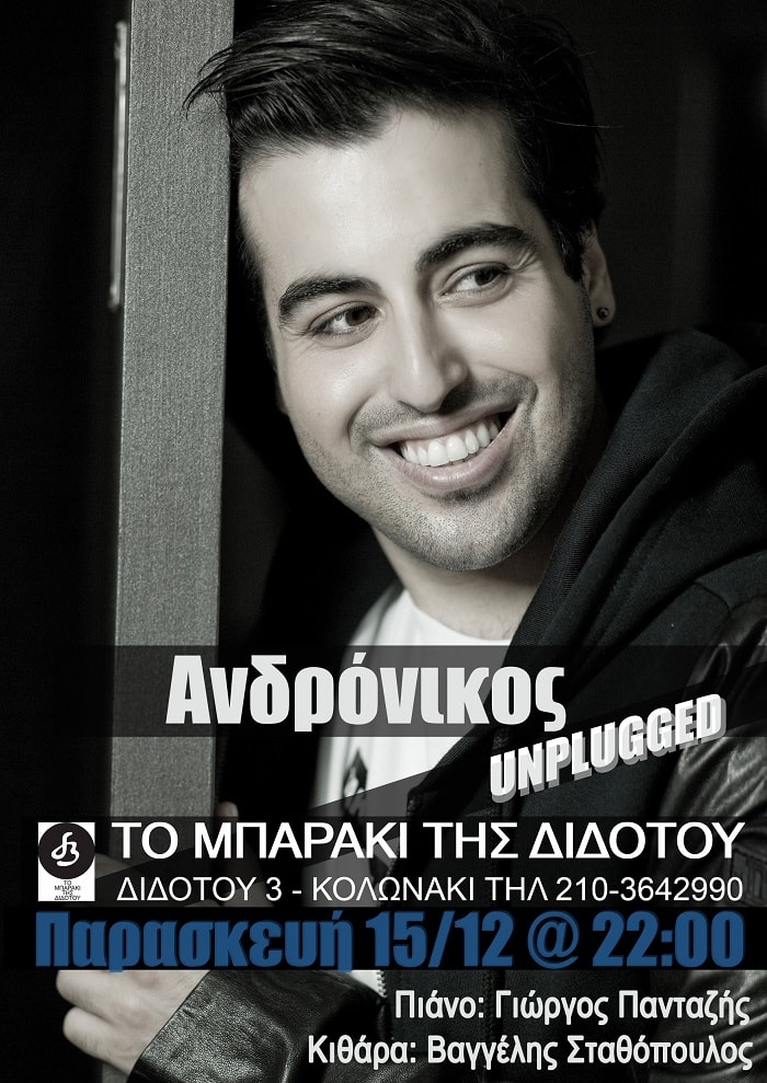 To ‘’Mπαράκι της Διδότου’’ παρουσιάζει την Παρασκευή 15 Δεκεμβρίου τον Ανδρόνικο live Tην Παρασκευή 15 Δεκεμβρίου στις 22.00 σε μια από τις πιο όμορφες και καλαίσθητες μουσικές σκηνές της Αθήνας, στη γνωστή γωνία Διδότου και Σίνα , θα φιλοξενηθεί ο νέος, ταλαντούχος, ερμηνευτής Ανδρόνικος. Μια παράσταση με τραγούδια από το άλμπουμ του ‘’ ΕΝΑ’’ , με κομμάτια του Αντώνη Μιτζέλου, Στέφανου Κορκολή και Ευσταθίας αλλά και αγαπημένα τραγούδια της ελληνικής […]