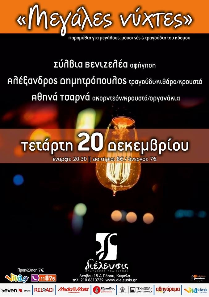 Βρυσάκι, Χώρος Τέχνης & Δράσης Βρυσακίου 17, Πλάκα, Αθήνα, τηλ.: 210 32 10 179 Μόνος κόσμοςEmily Dickinson Τελευταίες παραστάσεις Έως τις 29-12-2017 Η παράσταση «Μόνος κόσμος»-Emily Dickinson σε σκηνοθεσία Αλέξιου Κοτσώρη, που ξεκίνησε τον Σεπτέμβρη του 2017 στην Αυλή του Χώρου Τέχνης & Δράσης «Βρυσάκι» με μεγάλη ανταπόκριση από κοινό και κριτικούς, συνεχίστηκε στον Εσωτερικό Χώρο με επιτυχία, ολοκληρώνεται την Παρασκευή 29 Δεκεμβρίου 2017. Τελευταίες παραστάσεις: 15, 22, 29 Δεκεμβρίου […]