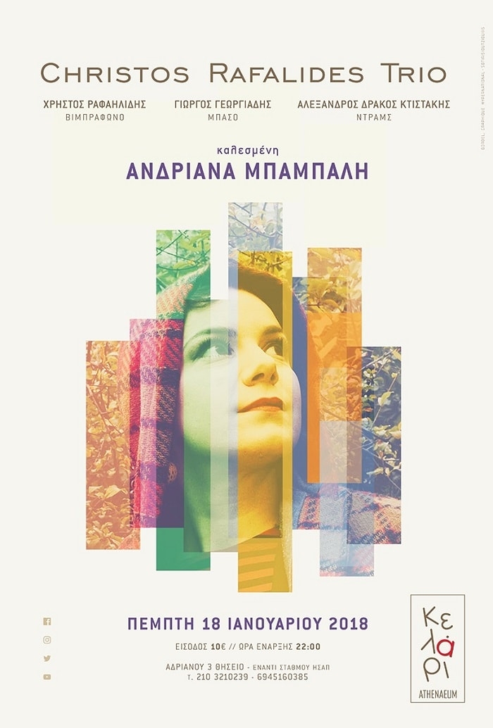 Ο Χρήστος Ραφαηλίδης και το Τρίο του στο Κελάρι για τρείς διαδοχικές Πέμπτες, συμπράττουν με διακεκριμένους καλλιτέχνες της ελληνικής μουσικής σκηνής: Μετά την sold out εμφάνισή με τον Κωστή Μαραβέγια συνεχίζουμε στις : - 18 ΙΑΝΟΥΑΡΙΟΥ για πρώτη φορά με την Ανδριάνα Μπάμπαλη, μια ερμηνεύτρια με ισχυρή μουσική ταυτότητα. - 25 ΙΑΝΟΥΑΡΙΟΥ ραντεβού με τον διακεκριμένο πιανίστα/συνθέτη Δημήτρη Καλαντζή, που αυταπόδεικτα εμπνέεται από τις μουσικές προκλήσεις. Christos Rafalides, βιμπράφωνοYiorgos Georgiadis, […]