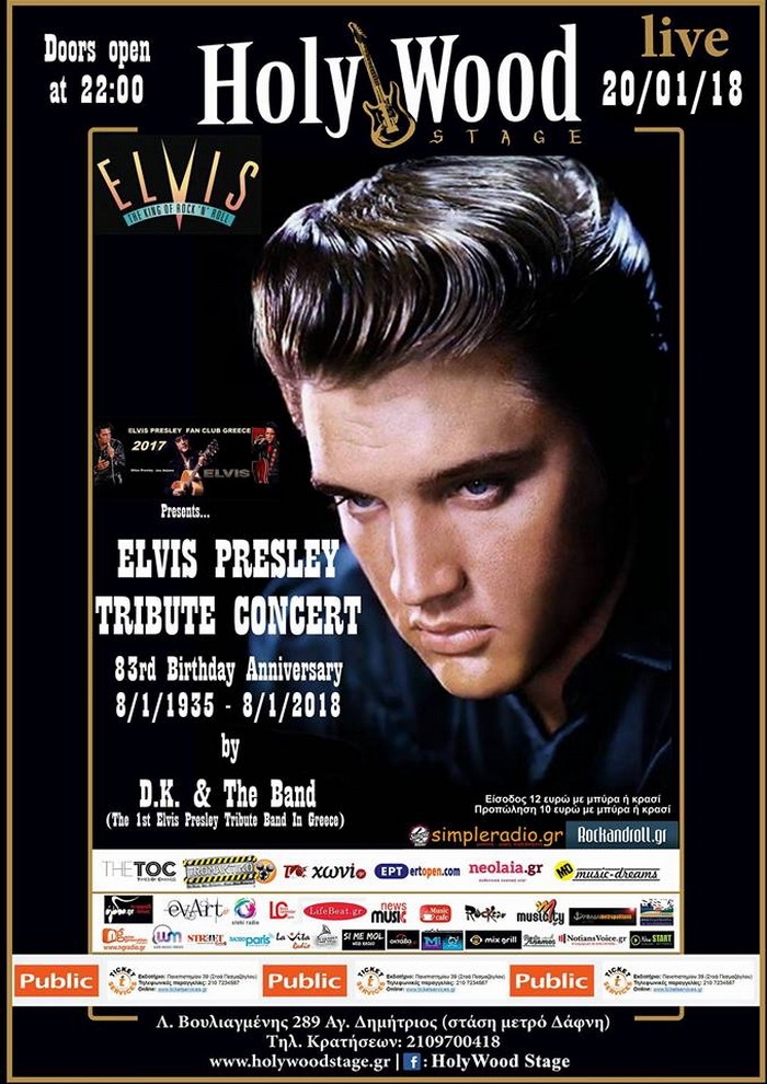 Το Elvis Presley Fan Club στην Ελλάδα και το HolyWood Stage παρουσιάζουν,την 1η Elvis Presley Tribute μπάντα στην Ελλάδα σε ένα μεγάλο ζωντανό αφιέρωμα στον Βασιλιά του Rock 'n' Roll...!Το Σάββατο 20 Ιανουαρίου 2018 οι D.K. & The Band ζωντανεύουν τον Θρύλο στην Σκηνή και μας οδηγούν σε ένα μουσικό ταξίδι από την αρχή έως και το τέλος της καριέρας του!Dj set by Babis Jgr!Ώρα Προσέλευσης 22:00μμD.K. & The […]