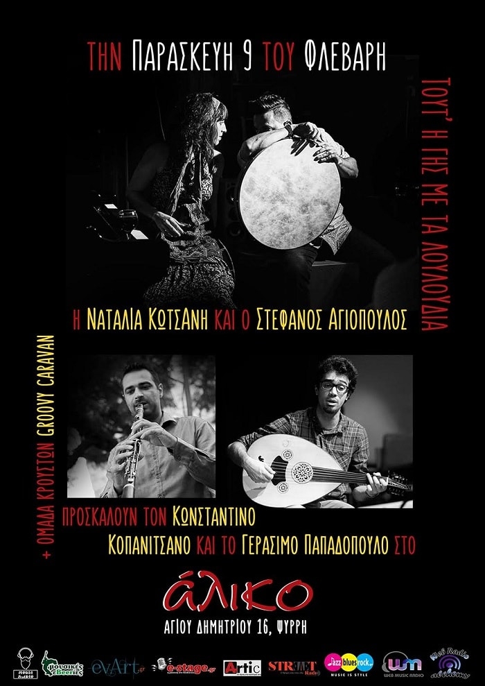 Παρασκευή 9 Φεβρουαρίου | 22.00 Τούτ’ η γης με τα λουλούδια Μια παράσταση πολύχρωμη και γιορτινή, όπου ανταμώνουν παραδοσιακά τραγούδια και όργανα της Δύσης και της Ανατολής. Ο Στέφανος Αγιόπουλος και η Ναταλία Κωτσάνη προσκαλούν το Γεράσιμο Παπαδόπουλο στο ούτι και τον Κωνσταντίνο Κοπανιτσάνο στη φλογέρα και στο κλαρίνο, σε ένα μουσικό οδοιπορικό στα Βαλκάνια και τη Μεσόγειο. Μαζί τους ομάδα κρουστών με νταούλια, τουμπερλέκια και ντέφια ντύνουν τα τραγούδια […]
