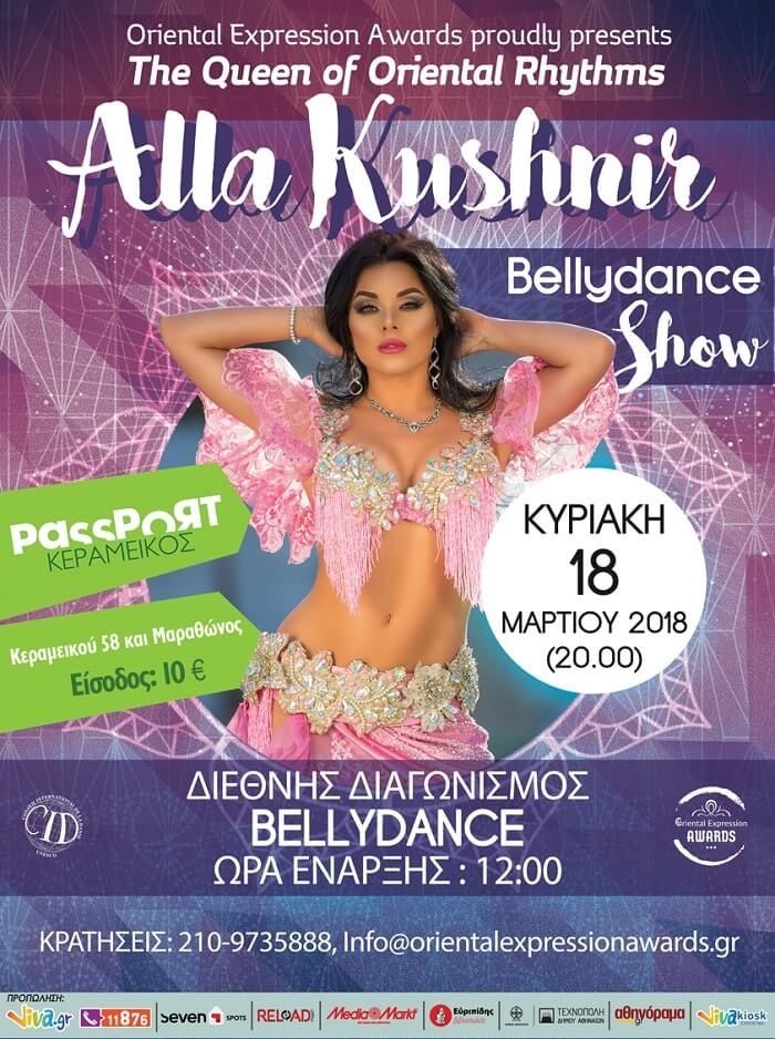 Η «Βασίλισσα» του Bellydance στην Αθήνα!!! Ένα μοναδικό SHOW στο PASSPORT – KΕΡΑΜΕΙΚΟΣΚυριακή 18 Μαρτίου 2018 (20:00) ΣΕΜΙΝΑΡΙΑ, DANCE SHOW ΚΑΙ ΔΙΕΘΝΗΣ ΔΙΑΓΩΝΙΣΜΟΣ BELLYDANCE Η Βασίλισσα του Bellydance ALLA KUSHNIR έρχεται για 1η φορά στην Αθήνα, προσκεκλημένη της Άννας Δημητράτου και του Artistic Studio Oriental Expression. To Αθηναϊκό κοινό θα έχει την ευκαιρία να απολαύσει σε ένα μοναδικό Show, την παγκοσμίου φήμης δασκάλα, χορογράφο και χορεύτρια, Alla Kushnir. Στο Show […]