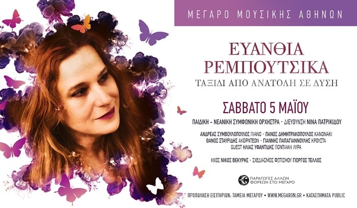 “Ταξίδι από Ανατολή σε Δύση” Η Ευανθία Ρεμπούτσικα στο Μέγαρο Μουσικής Αθηνών με την συνοδεία της Παιδικής Νεανικής Συμφωνικής Ορχήστρας “Νίνα Πατρικίδου" Σάββατο 5 Μαΐου 2018 Άλλοι έχουμε συγκινηθεί με την υπέροχη μουσική της που έχει ντύσει αγαπημένες μας ταινίες. Άλλοι πάλι, έχουμε σιγοψιθυρίσει δεκάδες φορές τα μοναδικά της τραγούδια. Από το “Αστέρι κι ευχή”, το ορχηστρικό άλμπουμ που την σύστησε στο πλατύ κοινό ως σήμερα, η Ευανθία Ρεμπούτσικα δεν […]