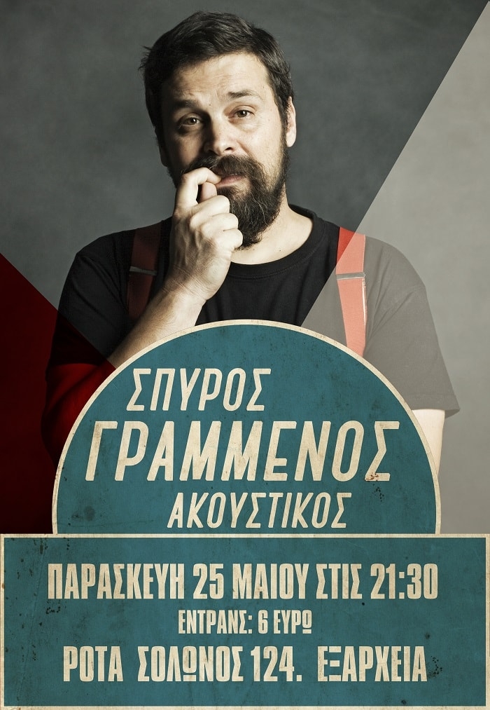 Ο Σπύρος Γραμμένος στη Ρότα Παρασκευή 25 Μαίου Ο Σπύρος Γραμμένος πιάνει Ρότα για μία τελευταια παρασταση…μετα τις δύο προηγούμενες sold out εμφανίσεις! Ποιος θα λείπει; Info: Παρασκευή 25 Μαίου Ώρα: 21.30 Ρότα Art Bar Σόλωνος 124, Αθήνα Κρατήσεις: 210 3801033 είσοδος (θεάματος): 6€
