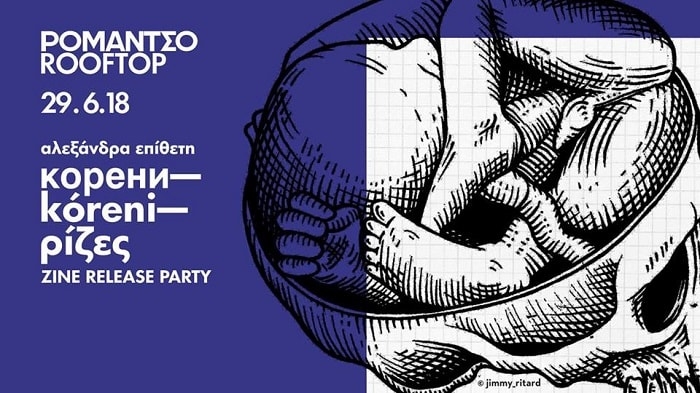 Корени (kóreni) Zine Release Party πάρτι Παρασκευή 29 Ιουνίου 2018 BIOS Ρομάντσο – Αναξαγόρα 3-5 Ώρα Προσέλευσης: 21.00 Είσοδος Ελεύθερη Η Αλεξάνδρα Επίθετη παρουσιάζει το zine КОРЕНИ (kóreni) στο rooftop του Ρομάντσο, με μια performance βασισμένη στα ποιήματα του zine και ένα AFTER PARTY με τις μουσικές των Nemmett και Sepho. Kорени ή kóreni σημαίνει ρίζες στα Βουλγάρικα. Οι ρίζες είναι αναγκαίες για την ανάπτυξη του φυτού, μπορεί να είναι […]