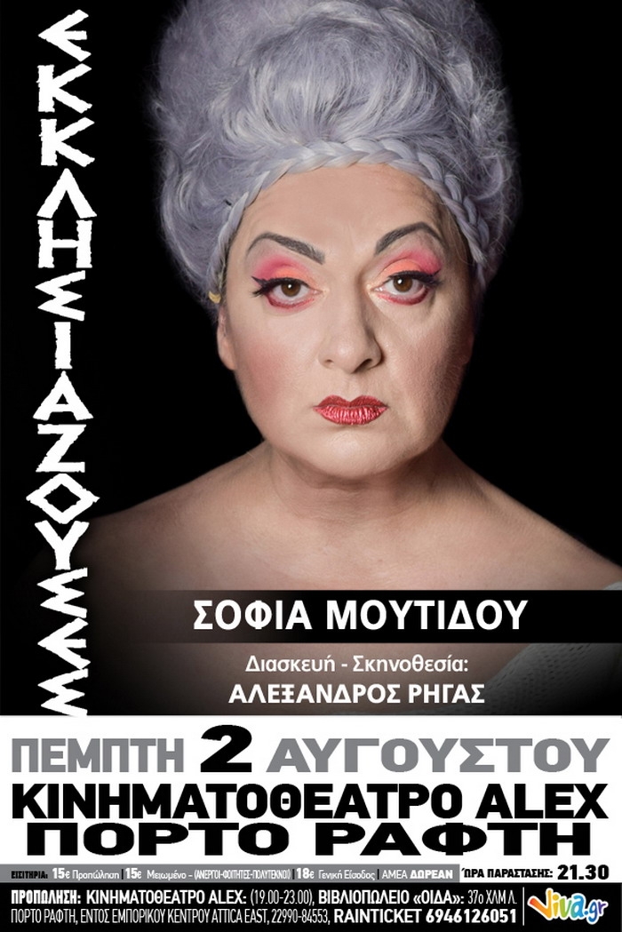 ΠΕΜΠΤΗ 2 ΑΥΓΟΥΣΤΟΥ ,”ΕΚΚΛΗΣΙΑΖΟΥΣΕΣ” ΤΟΥ ΑΡΙΣΤΟΦΑΝΗ ΣΕ ΔΙΑΣΚΕΥΗ-ΣΚΗΝΟΘΕΣΙΑ ΑΛΕΞΑΝΔΡΟΥ ΡΗΓΑ ΣΤΟ ΚΙΝΗΜΑΤΟΘΕΑΤΡΟ ALEX ΠΟΡΤΟ ΡΑΦΤΗ