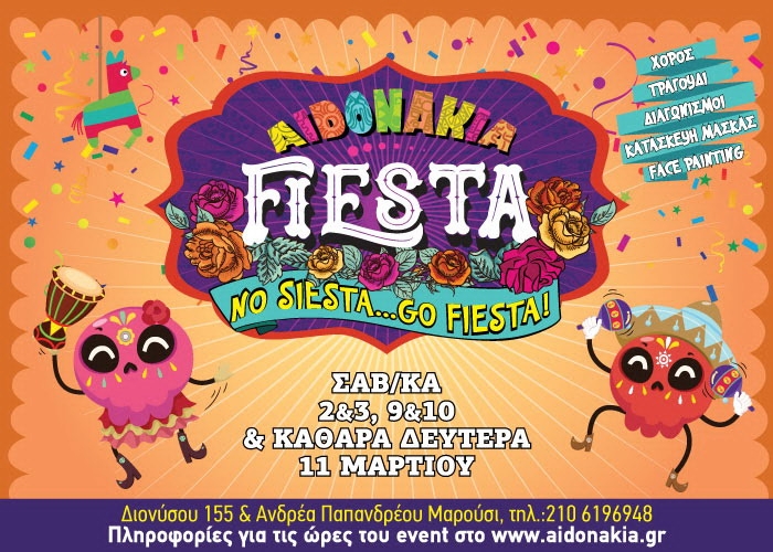 Aidonakia Fiesta 2019Το πιο πρωτότυπο αποκριάτικο event της πόλης!NO SIESTA, GO FIESTA 2 Σαββατοκύριακα2- 3 & 9-10 Μαρτίου& την Καθαρά Δευτέρα Φέτος τις Αποκριές, δίνουμε όλοι μαζί ραντεβού στο πιο παιχνιδιάρικο event στα «κλασσικά αγαπημένα» Αηδονάκια στο Μαρούσι! Ατελείωτο παιχνίδι και ξεφάντωμα στην πιο ξέφρενη αποκριάτικη FIESTA στο Λούνα Παρκ ΤΑ ΑΗΔΟΝΑΚΙΑ, στο Μαρούσι! Χορός, Τραγούδι και Αποκριάτικα Πάρτι - Κατασκευή αποκριάτικης μάσκας - Διαγωνισμούς στολής και χορού - Παραδοσιακό παιχνίδι «πινιάτα» - Face painting Αντλώντας έμπνευση […]