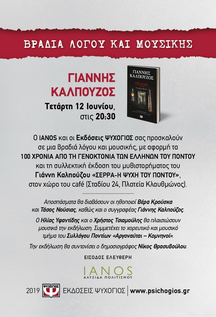 11/6 | 21:30 | TέΤΡΙΣΑλέξανδρος Εμμανουηλίδης (κιθάρα)Ηλίας Βαμβακούσης (κιθάρα)Γιάννης Παπαγεωργίου (κιθάρα)13/6 | 21:30 | Aegean Jazz projectΑνδρέας Πολυζωγόπουλος (τρομπέτα , φιληκόρνο)Τάκης Φαραζής (πιάνο, πλήκτρα)Κώστας Κωνσταντίνου (κόντρα μπάσο)Βασίλης Ρακόπουλος (κλασική κιθάρα)guest: Κωνσταντίνα Ρακοπούλου (vocals)14/6 | 21:30Ιουλία Καραπατάκη (τραγούδι)Άγης Παπαπαναγιώτου (κιθάρα-τραγούδι)Σωτήρης Τσόγκας (μπουζούκι-τραγούδι)Κωνσταντίνος Μιχαλάκης (ακορντεόν)16/6 | 21:00 | Athens Tango EnsembleΔήμος Βουγιούκας (μπαντονεόν, ενορχηστρώσεις)Κυριάκος Γκουβέντας (βιολί)Παναγιώτης Μάρκος (πιάνο)Δημήτρης Κουφογιώργος (κιθάρα)Κώστας Αρσένης (κοντραμπάσο) Αστερίσκος / asteriskosΑγίου Δημητρίου 16, Ψυρρήwww.asteriskos.net