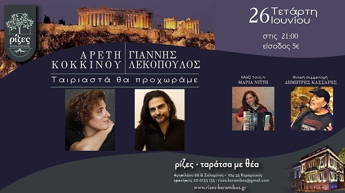 ΓΙΑΝΝΗΣ ΛΕΚΟΠΟΥΛΟΣ – ΑΡΕΤΗ ΚΟΚΚΙΝΟΥ live @ ΡΙΖΕΣ – Τετάρτη 26 Ιουνίου