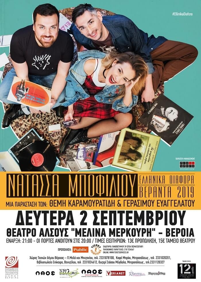 NATAΣΣΑ ΜΠΟΦΙΛΙΟΥ «Ελληνικά διάφορα» - Βεράντα 2019! ΜΙΑ ΠΑΡΑΣΤΑΣΗ ΤΩΝ: ΘΕΜΗ ΚΑΡΑΜΟΥΡΑΤΙΔΗ & ΓΕΡΑΣΙΜΟΥ ΕΥΑΓΓΕΛΑΤΟΥ ΤΡΙΤΗ 3 ΣΕΠΤΕΜΒΡΙΟΥ: ΚΗΠΟΘΕΑΤΡΟ ΑΛΚΑΖΑΡ - ΛΑΡΙΣΑ Ύστερα από την μεγάλη επιτυχία και το απόλυτο sold out σε Αθήνα, Θεσσαλονίκη και Κύπρο η Νατάσσα Μποφίλιου, ο Θέμης Καραμουρατίδης και ο Γεράσιμος Ευαγγελάτος, κάνουν το σαλόνι τους υπαίθριο και παρουσιάζουν τα “Ελληνικά διάφορα” σε επιλεγμένους προορισμούς ανά την Ελλάδα! Την Τρίτη 3 Σεπτεμβρίου εμφανίζονται στο Κηποθέατρο Αλκαζάρ στη Λάρισα. […]