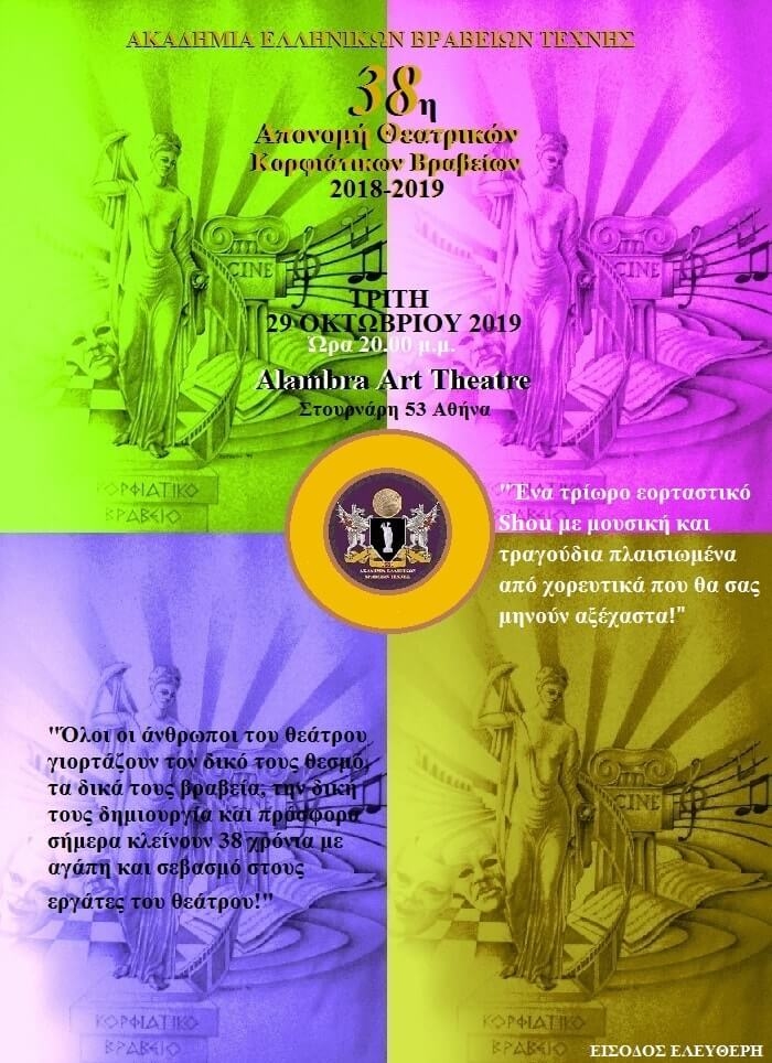 38η Απονομή Θεατρικών Κορφιάτικων Βραβείων / Οι λεπτομέρειες της βραδιάς / 29.10 @ Alhambra Art Theatre
