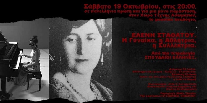 Το Man’s Theater παρουσιάζει σε πανελλήνια πρώτη,το Σάββατο 19 Οκτωβρίου 2019, στις 20.00 και για μία μόνο παράσταση, στον Χώρο Τέχνης Ασωμάτων το μουσικό αναλόγιο με θέμα: ΣΠΟΥΔΑΙΟΙ ΕΛΛΗΝΕΣκαι τίτλο: ΕΛΕΝΗ ΣΤΑΘΑΤΟΥ. Η ΓΥΝΑΙΚΑ, Η ΑΘΛΗΤΡΙΑ, Η ΣΥΛΛΕΚΤΡΙΑ.Πρώτο Πρόσωπο. Η βιογραφία της σπουδαίας Ελληνίδας συλλέκτριας αρχαιολογικών θησαυρών και η διάσωση και δωρεά τους στα σημαντικότερα μουσεία της χώρας μας. Από την Αλεξάνδρεια στην Αθήνα και τα Εθνικό Αρχαιολογικό Μουσείο/ Μουσείο Μπενάκη, […]