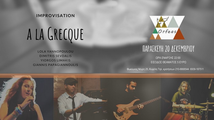 Improvisation a la Grecque live στον Ορφέα – Παρασκευή 20 Δεκεμβρίου