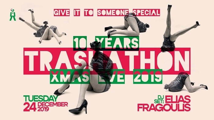 Ο Ηλίας Φραγκούλης παρουσιάζει 10 Years TRASHATHON Χmas Eve 2019 Τρίτη 24 Δεκεμβρίου 2019 BIOS (Πειραιώς 84) Ώρα Έναρξης: 23:00 Είσοδος ελεύθερη trashathon (τράσαθον) = συνδυασμός των λέξεων trash (σκουπίδι) και marathon (μαραθώνιος), προϊόν του νοσηρού λογο-παιγνιώδους εγκεφάλου του Ηλία Φραγκούλη, για τις ανάγκες χοροεσπερίδος με θέμα το ρεπερτόριο χαμηλού γούστου Την Παρασκευή 27 Νοεμβρίου του 2009, ο κριτικός κινηματογράφου Ηλίας Φραγκούλης (freecinema.gr), ένας από τους βασικούς εμπνευστές των original […]