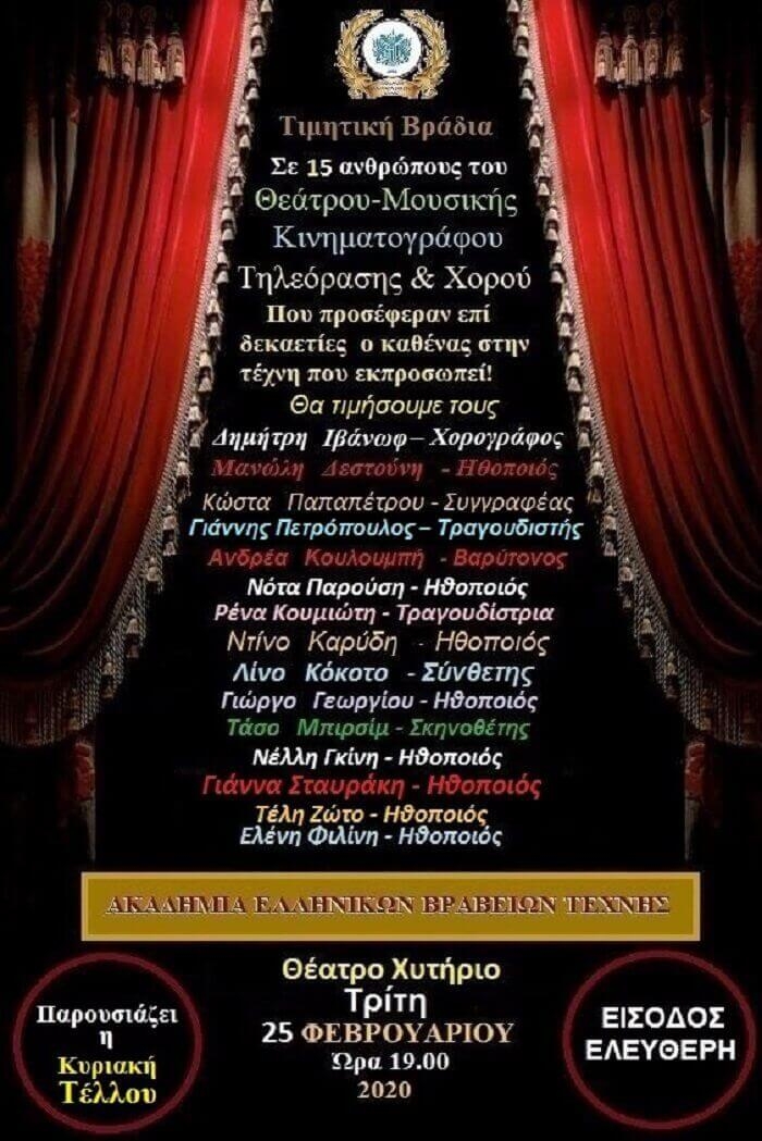 Ειδικά Βραβεία 2020 / Μια τιμητική απονομή @ Θέατρο Χυτήριο 25/02