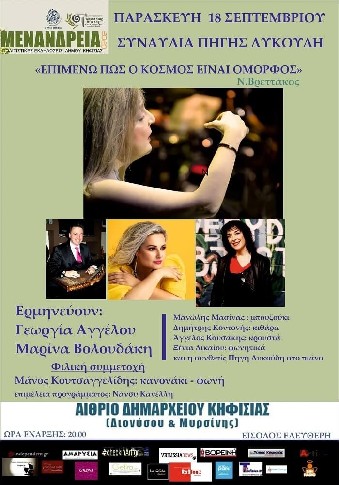 Πηγή Λυκούδη – εκδήλωση 18/09 στα Μενάνδρεια του Δήμου Κηφισιάς