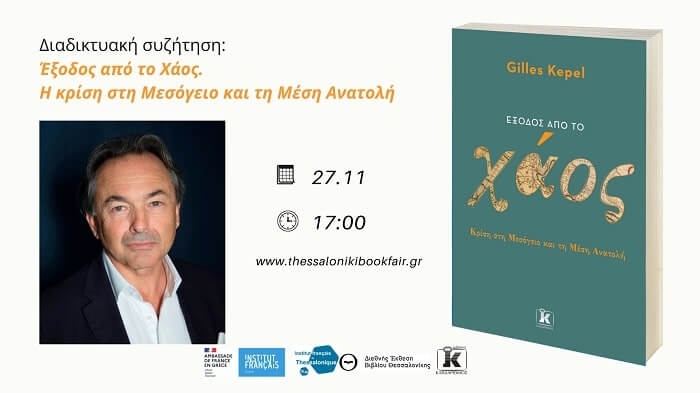 Οι εκδόσεις Κλειδάριθμος, το Γαλλικό Ινστιτούτο και η Διεθνής Έκθεση Βιβλίου Θεσσαλονίκης σας προσκαλούν την Παρασκευή 27 Νοεμβρίου στις 17:00 στη διαδικτυακή συζήτηση με αφορμή το νέο βιβλίο του Ζιλ Κεπέλ Έξοδος από το χάος - Κρίση στη Μεσόγειο και τη Μέση Ανατολή. Η εκδήλωση θα προβάλλεται ζωντανά από τη σελίδα Facebook του Γαλλικού Ινστιτούτου και από το νέο ιστότοπο της Διεθνούς Έκθεσης Βιβλίου Θεσσαλονίκης. Θα μιλήσουν οι: Ζιλ Κεπέλ, καθηγητής στο Ινστιτούτο Πολιτικών Επιστημών του Παρισιού, συγγραφέας […]