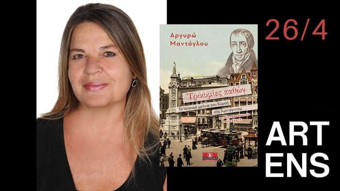 Με αφορμή την επέτειο των γενεθλίων του Αδαμάντιου Κοραή (Σμύρνη, 1748), ο Πολιτιστικός Οργανισμός ARTENS, και οι Εκδόσεις Κλειδάριθμος παρουσιάζουν τη Δευτέρα 26 Απριλίου 2021, στις 19:00 το νέο βιβλίο της Αργυρώς Μαντόγλου Τρικυμίες Παθών –Τα νεανικά χρόνια του Κοραή στο Άμστερνταμ. Με τη συγγραφέα θα μιλήσει η Μυρσίνη Ζορμπά, πρώην Υπουργός Πολιτισμού, ενώ τη συζήτηση θα συντονίσει η δημοσιογράφος Μαρίνα Τσικλητήρα. Η εκδήλωση θα μεταδοθεί live από τη σελίδα facebook του Artens https://www.facebook.com/Artens.gr Λίγα λόγια για το βιβλίο: […]