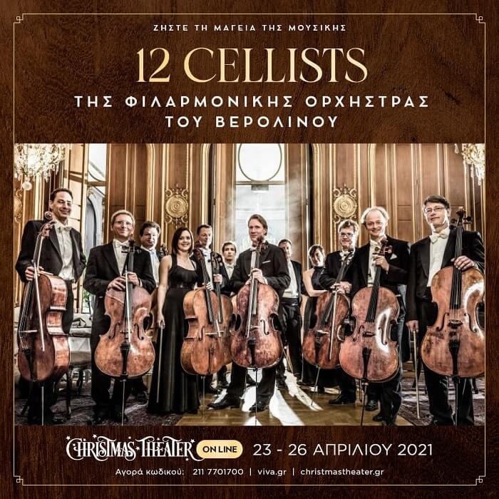 ΖΗΣΤΕ ΤΗΝ ΜΑΓΕΙΑ ΤΗΣ ΜΟΥΣΙΚΗΣTHE 12 CELLISTSΤΗΣ ΦΙΛΑΡΜΟΝΙΚΗΣ ΟΡΧΗΣΤΡΑΣ ΤΟΥ ΒΕΡΟΛΙΝΟΥ Τα δώδεκα βιολοντσέλα της διάσημης Φιλαρμονικής Ορχήστρας του Βερολίνου σε μια συναυλία με Beatles, Edith Piaf, Astor Piazzolla, Duke Ellington, Maurice Ravel, Michel Legrand κ.α. 23-26 ΑΠΡΙΛΙΟΥ 2021CHRISTMAS THEATER ON LINE Ζήστε την μαγεία της μουσικής με μια σπουδαία συναυλία από ένα εκπληκτικό μουσικό σχήμα. Οι 12 τσελίστες της διάσημης Φιλαρμονικής Ορχήστρας του Βερολίνου παρουσιάζουν μια μοναδική γιορτή γεμάτη […]