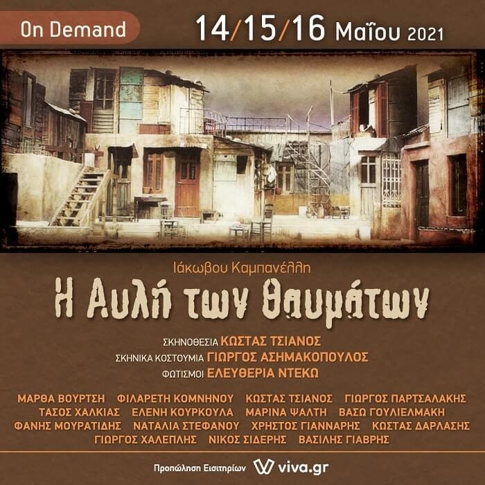 Η ιστορική παράσταση Η ΑΥΛΗ ΤΩΝ ΘΑΥΜΑΤΩΝ του Ιακώβου Καμπανέλλη, σε σκηνοθεσία Κώστα Τσιάνου, on demand στις 14, 15 και 16/05
