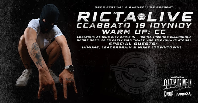 RICTA LIVE IN ATHENS | 19 /6 @ CITY DRIVE – IN IDRIMA MIZONOS ELLINISMOU Ο Θεσσαλονικιός ράπερ Ricta live για πρώτη φορά στην Αθήνα το Σάββατο 19 Ιουνίου μας υπόσχεται ένα υπερθέαμα δρόμου, σε συνδυασμό με visual show και live acts! Πάρε το αμάξι, την παρέα σου και ελα να απολαύσεις ένα live που θα συζητιέται για καιρό. Η αναπαραγωγή του ήχου γίνεται ταυτόχρονα από ηχοσύστημα (που θα τραντάξει για […]