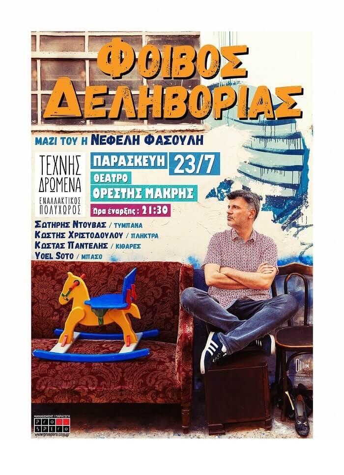 ΦΟΙΒΟΣ ΔΕΛΗΒΟΡΙΑΣ ΠΑΡΑΣΚΕΥΗ 23 ΙΟΥΛΙΟΥ ΘΕΑΤΡΟ ΟΡΕΣΤΗΣ ΜΑΚΡΗΣ - ΧΑΛΚΙΔΑ ΕΚΤΑΚΤΗ ΕΙΔΗΣΗ: Ο Φοίβος Δεληβοριάς βγαίνει απ’το σπίτι του! Και το ίδιο κι εσείς. Την Παρασκευή 23 Ιουλίου ο Φοίβος Δεληβοριάς εμφανίζεται στο Θέατρο Ορέστης Μακρής στην Χαλκίδα. Ο Φοίβος παρέα με τους σταθερούς συνεργάτες του, τη μπάντα του και την τραγουδίστρια Νεφέλη Φασούλη, γυρίζουν την Ελλάδα με μουσική που φύλαξαν σαν τα μάτια τους την περίοδο των περιορισμών. Τραγούδια […]