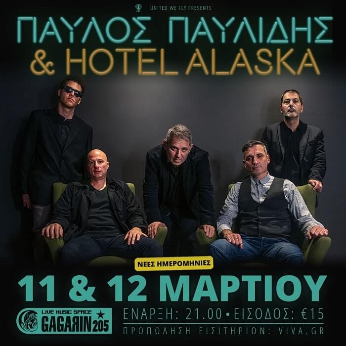 ΠΑΥΛΟΣ ΠΑΥΛΙΔΗΣ & Hotel Alaska LIVE Νέες Ημερομηνίες: Παρασκευή 11 & Σάββατο 12 Μαρτίου 2022 GAGARIN 205 Η προπώληση έχει ξεκινήσει Δύο χρόνια μετά την τελευταία του εμφάνιση στο Gagarin 205, ο Παύλος Παυλίδης επιστρέφει στο ιστορικό live stage για ένα εκρηκτικό διήμερο, την Παρασκευή 11 και το Σάββατο 12 Μαρτίου 2022. Λίγο μετά την κυκλοφορία του νέου του άλμπουμ "Το Μαύρο Κουτί" από τη United We Fly, ο Παύλος ανεβαίνει ξανά στη σκηνή του αγαπημένου […]