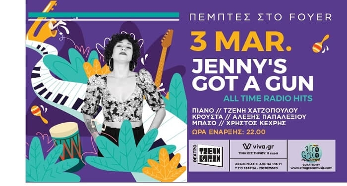 Πέμπτες στο Foyer "Jenny's Got A Gun" presents All time radio hits. Πέμπτη 3 Μαρτίου Ένας νέος χώρος για live και events γεννήθηκε στο κέντρο της Αθήνας.Το Foyer στον ιστορικό χώρο του θεάτρου Τζένη Καρέζη στο κέντρο της Αθήνας, έχει ξεκινήσει εδώ και λίγο καιρό να φιλοξενεί ανήσυχους μουσικούς και καλλιτέχνες, σε ένα ατμοσφαιρικό χώρο, που εκπέμπει ζεστασιά. Τα live συνεχίζονται την Πέμπτη 3 Μαρτίου, με την εμφάνιση της Τζένη […]