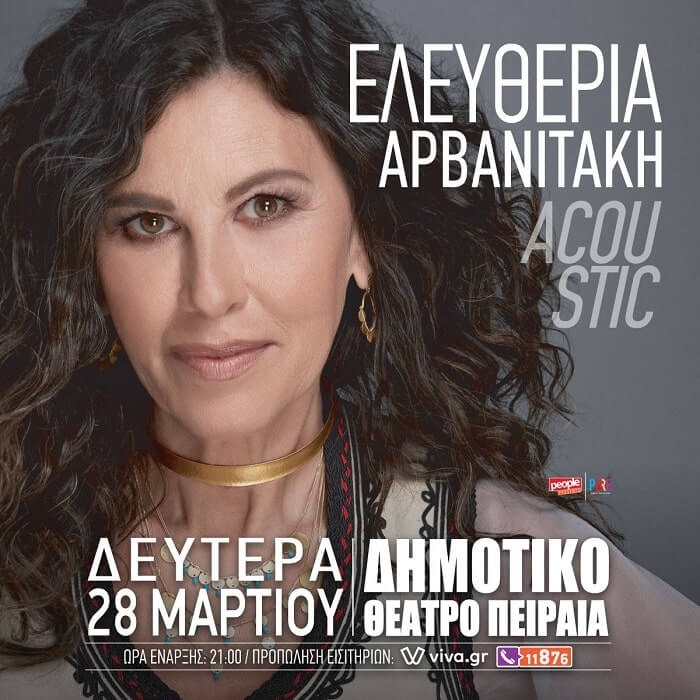 ΕΛΕΥΘΕΡΙΑ ΑΡΒΑΝΙΤΑΚΗ ΔΗΜΟΤΙΚΟ ΘΕΑΤΡΟ ΠΕΙΡΑΙΑ ΣΤΙΣ 28/03/2022 “ACOUSTIC” Η διαχρονική ερμηνεύτρια Ελευθερία Αρβανιτάκη δε χρειάζεται προλόγους και ιδιαίτερες συστάσεις. Είναι σπουδαία στην τέχνη της, έχει ταξιδέψει τη μουσική της και τη μουσική της χώρας μας σε όλα τα μήκη και τα πλάτη του πλανήτη, έχει ένα ευρύ ρεπερτόριο γεμάτο από όλα τα χρώματα και τα ιδιώματα, πότε pop και πότε λαϊκή, πότε τζαζ και πότε παραδοσιακή, με τραγούδια που έχουν […]