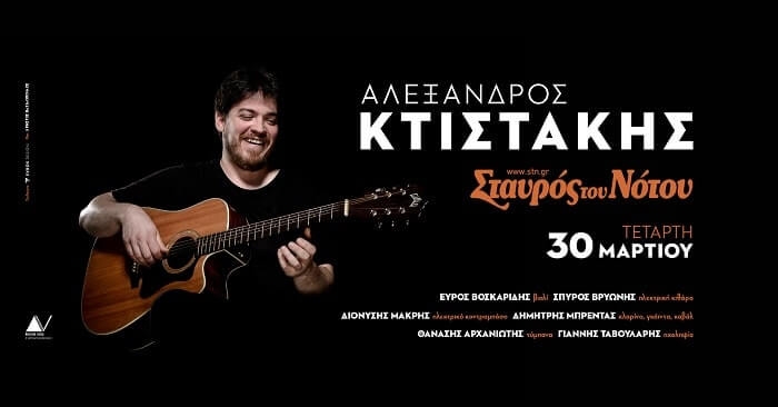 Αλέξανδρος ΚτιστάκηςΤετάρτη 30 ΜαρτίουΣταυρός του Νότου Ο Αλέξανδρος Κτιστάκης στη Κεντρική Σκηνή του Σταυρού του Νότου την Τετάρτη 30 Μαρτίου, παρουσιάζει τα νέα του τραγούδια καθώς και παλιά αγαπημένα.Ο Αλέξανδρος Κτιστάκης γεννήθηκε και μεγάλωσε στη Λάρισα , και ξεκίνησε να ασχολείται με τη μουσική σε ηλικία 12 χρονών.Από το 2012 ασχολείται με τη μουσική σύνθεση για το θέατρο , το 2013 έως το 2018 ήταν μέλος της μπάντας του Θανάση […]
