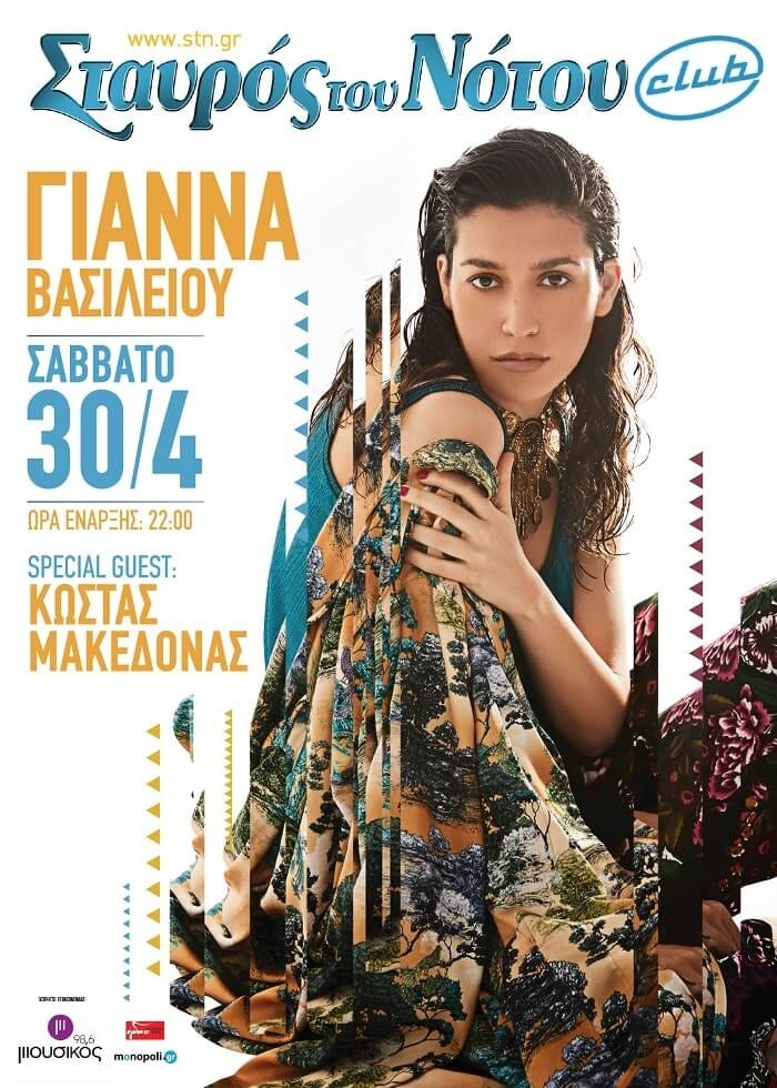 ΓΙΑΝΝΑ ΒΑΣΙΛΕΙΟΥ ΣΑΒΒΑΤΟ 30 ΑΠΡΙΛΙΟΥ ΣΤΑΥΡΟΣ ΤΟΥ ΝΟΤΟΥ CLUB Special Guest: ΚΩΣΤΑΣ ΜΑΚΕΔΟΝΑΣ Η προπώληση στη viva.gr θα ανοίξει σύντομα, για κρατήσεις επικοινωνήστε στο τηλέφωνο του Σταυρού του Νότου: 210 9226975 Μετά την sold out εμφάνισή της τον περασμένο Νοέμβριο, η Γιάννα Βασιλείου επιστρέφει το Σάββατο 30 Απριλίου στη σκηνή του club του Σταυρού του Νότου, με ένα αμιγώς ελληνικό πρόγραμμα και με special guest τον αγαπημένο Κώστα Μακεδόνα. Η Γιάννα θα τραγουδήσει ζωντανά για πρώτη φορά το τραγούδι "Μαύρο Κυπαρίσσι" που κυκλοφόρησε στις 6 […]
