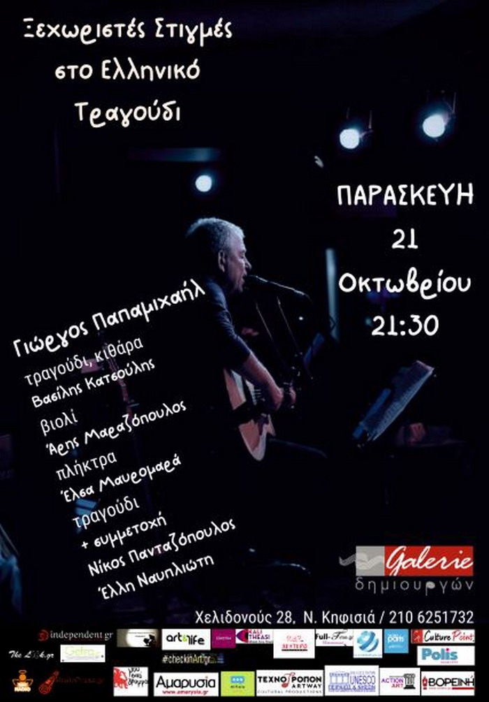 ”Ξεχωριστές στιγμές στο ελληνικό τραγούδι” στον πολυχώρο Τέχνης Galerie Δημιουργών