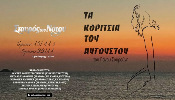 ΤΑ ΚΟΡΙΤΣΙΑ ΤΟΥ ΑΥΓΟΥΣΤΟΥ ΤΡΙΤΗ 15/11 & 22/11 ΣΤΑΥΡΟ ΤΟΥ ΝΟΤΟΥ CLUB Χωράει ο Αύγουστος μέσα σε 30 τραγούδια;Πόσα θαύματα μπορούν να συμβούν στην διάρκεια ενός live;Πόσα θαύματα μπορούν να συμβούν στην διάρκεια μιας life; Σου έχω διαλέξει τριάντα τραγούδια για να σου πω όσα δεν κατάφερα από κοντά.Έχω δανειστεί τριάντα τραγούδια που ξέρω ό,τι ξέρεις, σε έχω ακούσει να τα τραγουδάς.Τριάντα τραγούδια που ακούγαμε σε εκείνο το στικάκι και που είχες μάθει […]
