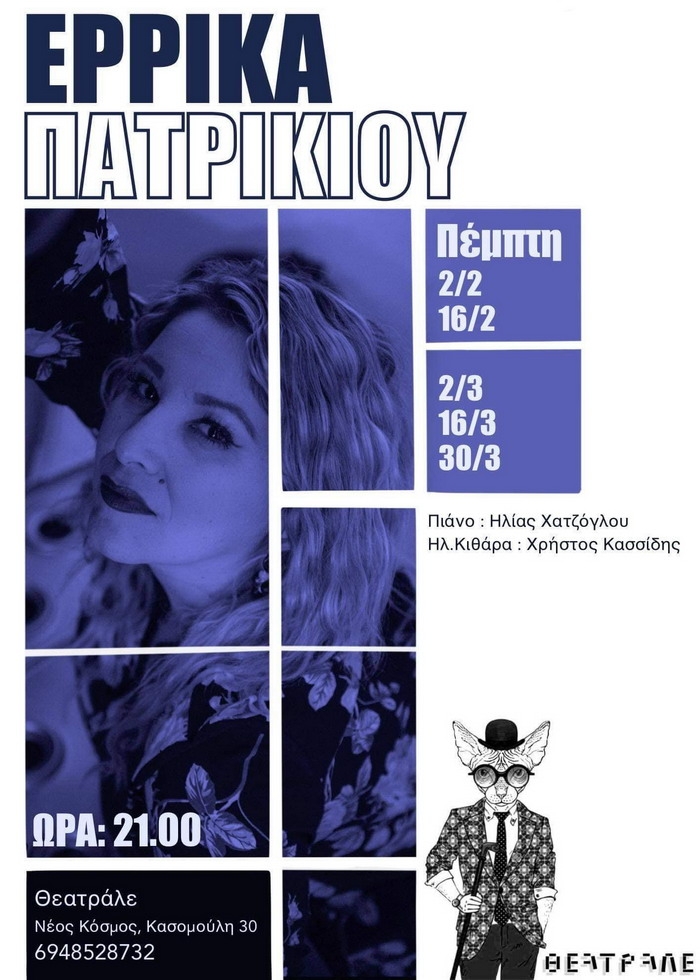 H Έρρικα Πατρικίου ζωντανά στο Θεατράλε, στο Νέο Κόσμο. Πέμπτες 2 & 16 Φεβρουαρίου και 2,16 & 30 Μαρτίου