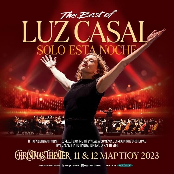 LUZ CASALSolo esta nocheThe best of Luz Casal11 & 12 ΜΑΡΤΙΟΥ 2023Christmas TheaterΟλυμπιακά Ακίνητα Γαλατσίου Η πιο αισθησιακή φωνή της Μεσογείου, με τη συνοδεία 60μελούς Συμφωνικής Ορχήστρας, τραγουδάει για το πάθος, τον έρωτα και τη ζωή. H μεγάλη ντίβα της Ιβηρικής, η ανεπανάληπτη Luz Casal, με μια εντυπωσιακή ορχήστρα σπουδαίων μουσικών αλλά και με τη συμμετοχή της δική μας συμφωνικής ορχήστρας Φιλαρμόνια, έρχεται στην Αθήνα για δυο μοναδικές συναυλίες, το […]