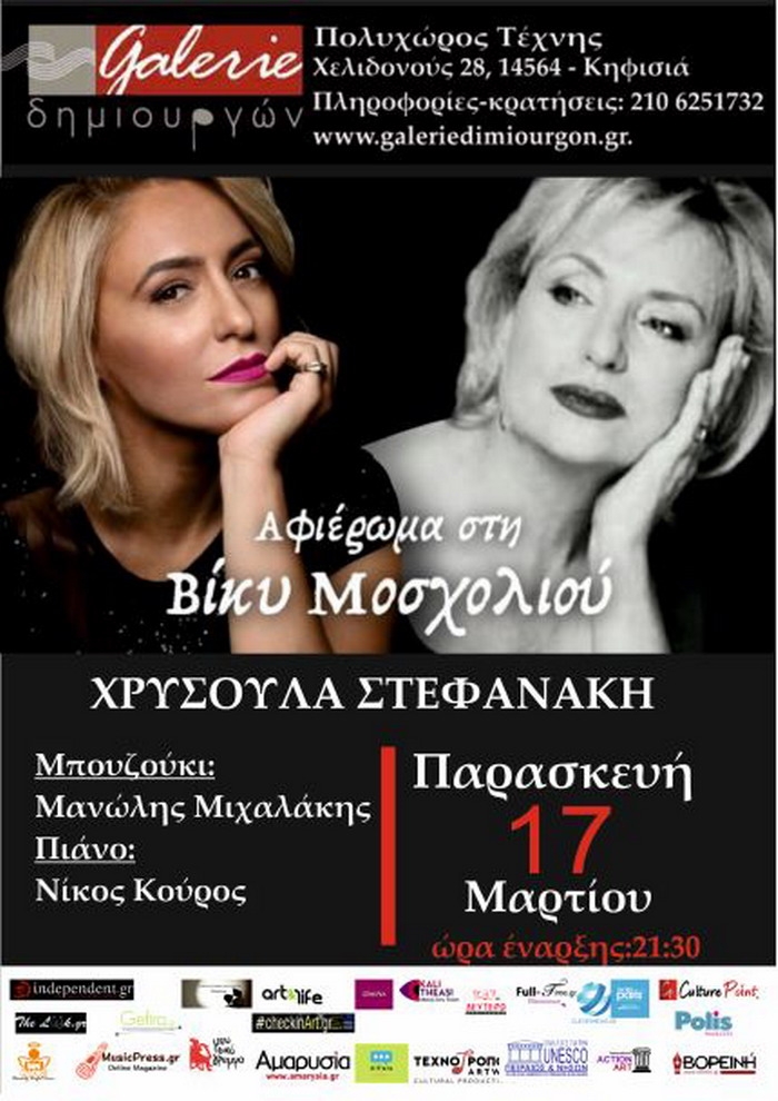 Αφιέρωμα στην Βίκυ Μοσχολιού την Παρασκευή 17 Μαρτίου στην Galerie Δημιουργών!