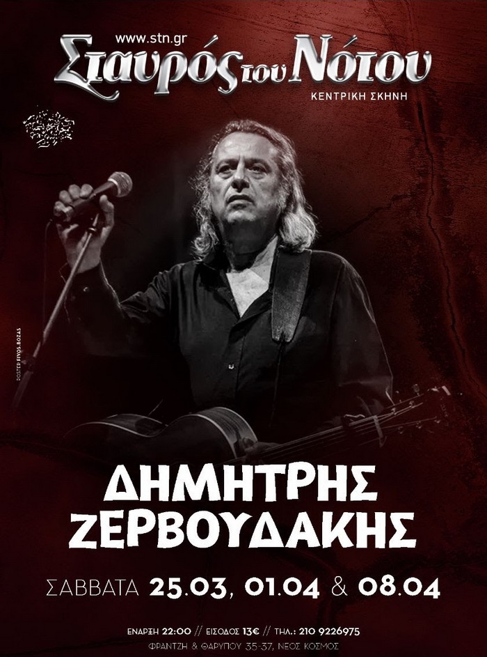 Δημήτρης Ζερβουδάκης Ι Κεντρική Σκηνή – Σταυρός του Νότου Ι Σάββατα 25 Μαρτίου, 1 & 8 Απριλίου