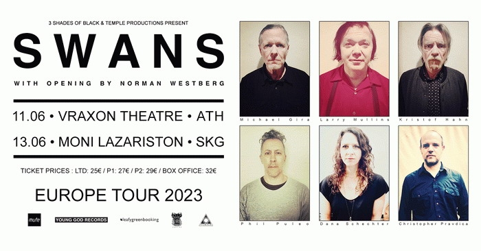 3 Shades of Black & Temple Productions presentSwans live in Greece Κυριακή 11 Ιουνίου 2023 // Θέατρο Βράχων Μελίνα Μερκούρη // ΑθήναΤρίτη 13 Ιουνίου 2023 // Μονή Λαζαριστών // ΘεσσαλονίκηOpening act: Norman Westberg Τα εισιτήρια κοστίζουν 25€, 27€ (περιορισμένη προπώληση), 29€ (υπόλοιπη προπώληση) και 32€ (ταμείο).Ηλεκτρονική προπώληση: https://www.viva.gr/tickets/music/swans-live-in-greeceΗ προπώληση πραγματοποιείται μέσω του viva.gr και του δικτύου καταστημάτων του. Οι SWANS είναι το σημαντικότερο μουσικοθρησκευτικό σχήμα του 22ου αιώνα. Ξανά. Οι […]