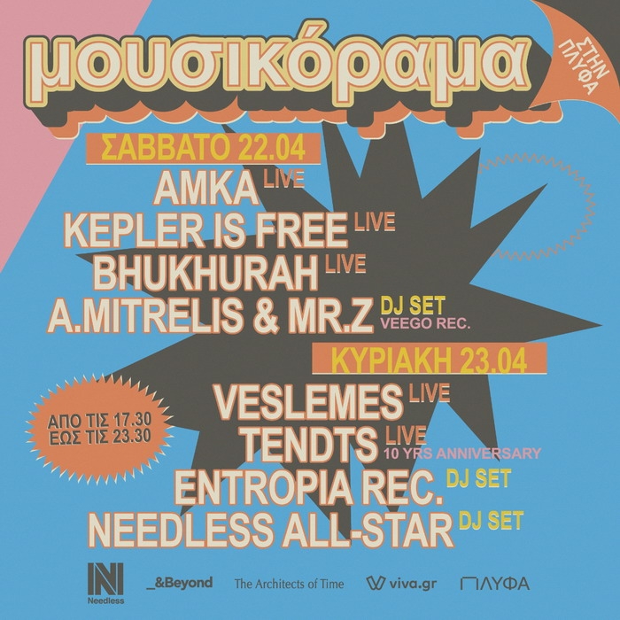 12 ώρες μουσικής παντός ρυθμού Σάββατο 22 και Κυριακή 23 Απριλίου, 17.30 - 23.30 Live: Veslemes, Keppler Is Free, Tendts, Amka, Bhukhurah DJ sets: Entropia Records, Andreas Mitrelis & Mr.Z (Veego Records), Needless All-Star DJs To Σάββατο 22 και την Κυριακή 23 Απρίλη, από νωρίς το απόγευμα, ο πανέμορφος, αίθριος, βιομηχανικός χώρος της Πλύφα στο Βοτανικό, φιλοξενεί το πρώτο Μουσικόραμα με την υπογραφή των &Beyond και Needless. Το μουσικό […]
