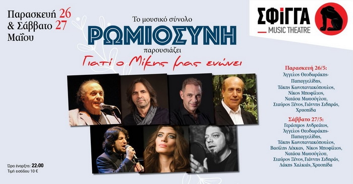 Το Μουσικό Σύνολο Ρωμιοσύνη παρουσιάζει: “Γιατί ο Μίκης μας ενώνει”. 26 & 27 Μαΐου στη Σφίγγα