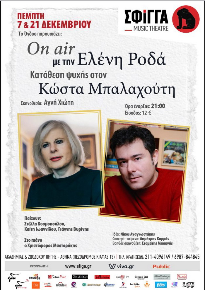 OΝ AIR με την Ελένη Ροδά – Κατάθεση ψυχής στον Κώστα Μπαλαχούτη. 7 & 21 Δεκεμβρίου στη Σφίγγα