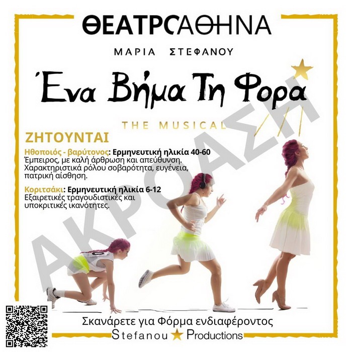 ΔΕΥΤΕΡΗ ΑΚΡΟΑΣΗ ΓΙΑ ΤΟ ΠΟΛΥΑΝΑΜΕΝΟΜΕΝΟ MUSICAL ΕΝΑ ΒΗΜΑ ΤΗ ΦΟΡΑ ΠΟΥ ΘΑ ΠΑΡΟΥΣΙΑΣΤΕΙ ΣΤΟ ΘΕΑΤΡΟ ΑΘΗΝΑ ΑΠΟ ΤΟ ΝΟΕΜΒΡΙΟ