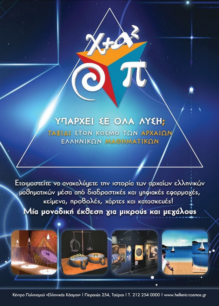 ΥΠΑΡΧΕΙ ΣΕ ΟΛΑ ΛΥΣΗ; ΤΑΞΙΔΙ ΣΤΟΝ ΚΟΣΜΟ ΤΩΝ ΑΡΧΑΙΩΝ ΕΛΛΗΝΙΚΩΝ ΜΑΘΗΜΑΤΙΚΩΝ – ΑΠΟ 16 ΝΟΕΜΒΡΙΟΥ ΣΤΟ ΚΕΝΤΡΟ ΠΟΛΙΤΙΣΜΟΥ «ΕΛΛΗΝΙΚΟΣ ΚΟΣΜΟΣ»