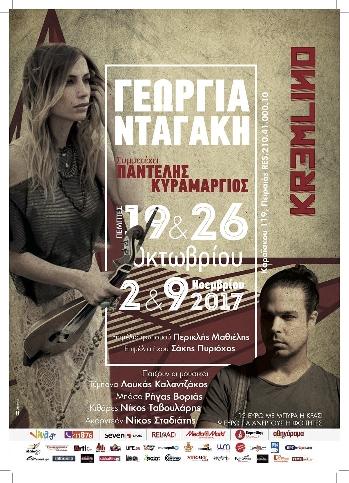 Γεωργία Νταγάκη Μαζί της ο Παντελής Κυραμαργιός από 19 Οκτωβρίουγια 4 παραστάσεις  Αναβάλλεται, για λόγους υγείας, η πρώτη ζωντανή εμφάνιση της Γεωργίας Νταγάκη και του Παντελή Κυραμαργιού στο Kremlino, που ήταν προγραμματισμένη για την Πέμπτη 19 Οκτωβρίου. Οι δύο καλλιτέχνες θα βρίσκονται στη σκηνή του Kremlino την επόμενη Πέμπτη 26 του μήνα και για τέσσερις συνολικά εμφανίσεις.   Η Γεωργία Νταγάκη παίρνει τα τραγούδια και τη λύρα της και κατεβαίνει στον […]
